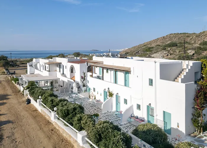 Tranquila ubicado a una distancia de 3 km de la Puerta de Apolo, el Naxos Cave Suites Stelida dispone de un patio, una sala de estar compartida y también instalaciones para deportes acuáticos. El apartamento tiene balcones grandes con vistas al mar.